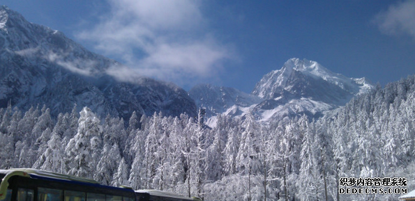 穿过二郎神隧道,感人的一幕。顶着个超级大太阳,竟然一点雪也没有,全车的人惊呼