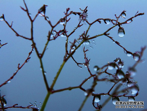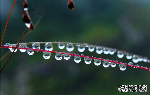 雾蒙蒙的天气 草叶上也结了一排又一排的露珠。
